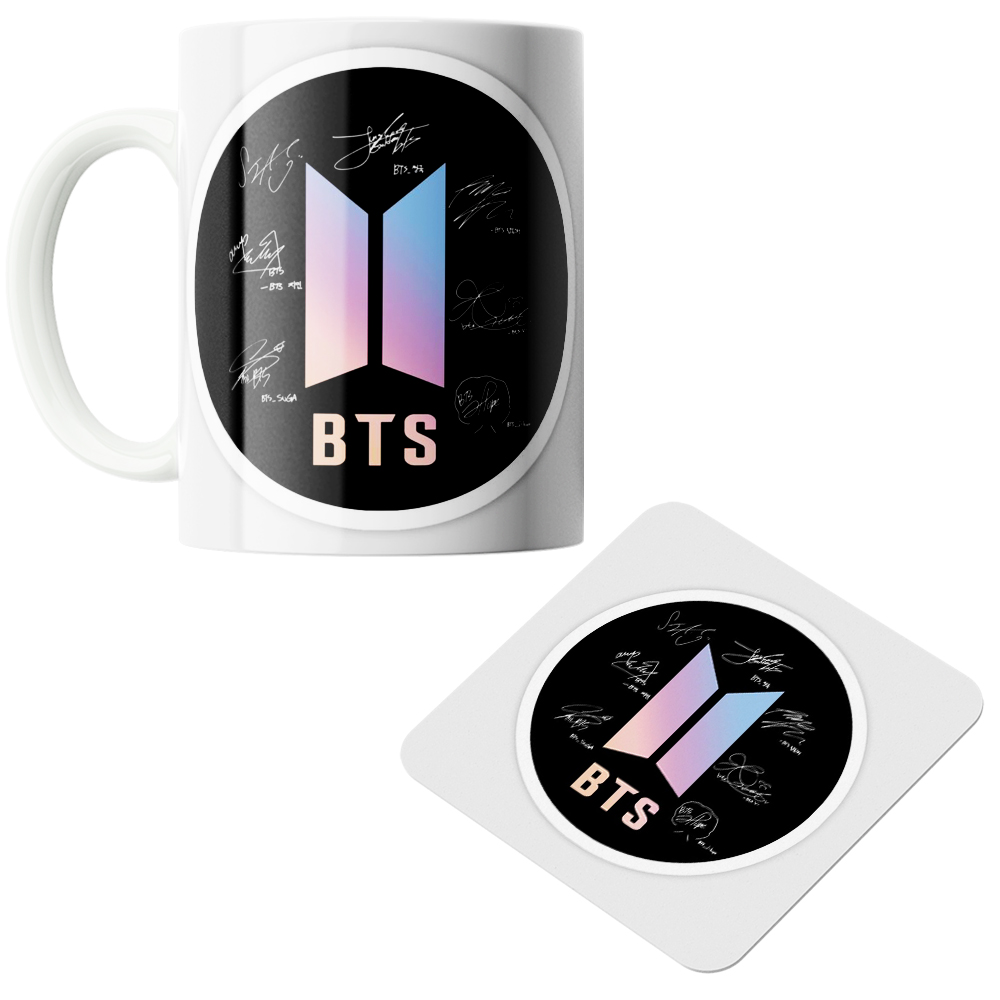 ماگ سرامیکی طرح بی تی اس به همراه زیر لیوانی کد1019