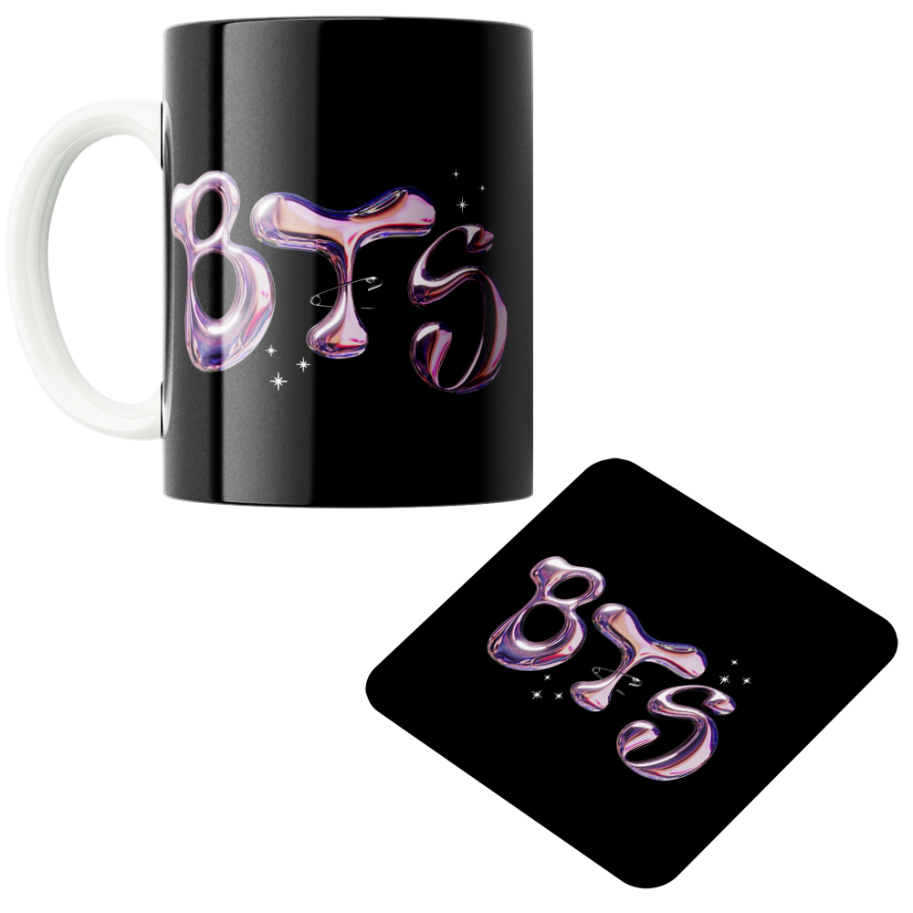 ماگ سرامیکی طرح بی تی اس به همراه زیر لیوانی کد1020