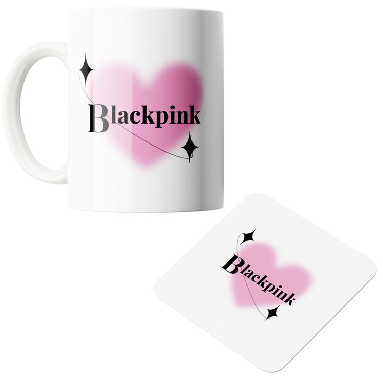 ماگ سرامیکی طرح بلک پینک به همراه زیر لیوانی کد1011