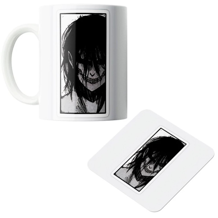 ماگ سرامیکی طرح انیمه اتک ان تایتان به همراه زیر لیوانی کد1077