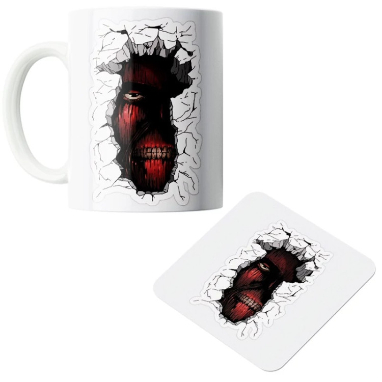 ماگ سرامیکی طرح انیمه اتک ان تایتان به همراه زیر لیوانی کد1083