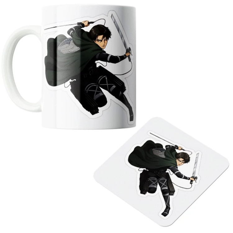 ماگ سرامیکی طرح انیمه اتک ان تایتان به همراه زیر لیوانی کد1079