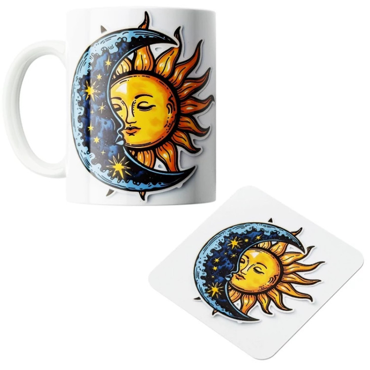 ماگ سرامیکی طرح ماه و خورشید به همراه زیر لیوانی کد1217