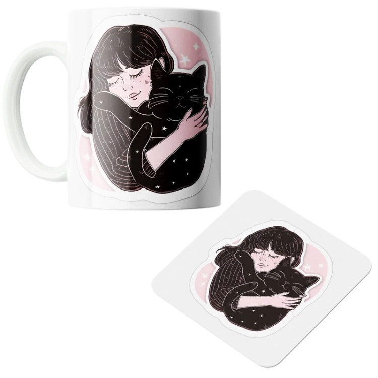 ماگ سرامیکی طرح گربه به همراه زیر لیوانی کد1234